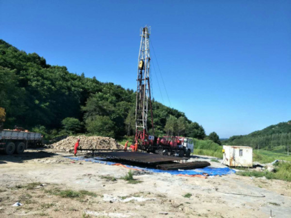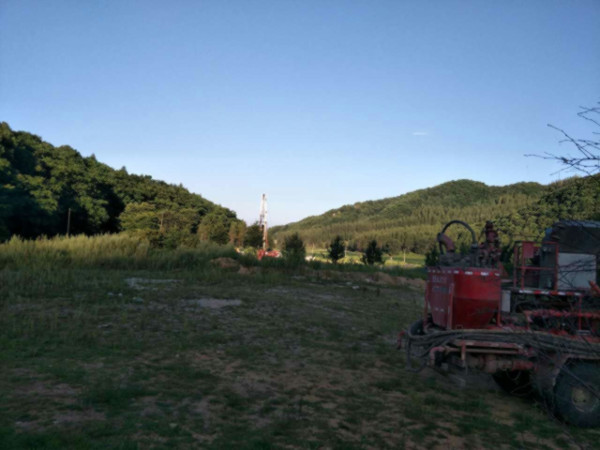 圖片新聞:公司院內(nèi)的地?zé)嵩囼炓痪?,下套管施工?017年史文全報道)
